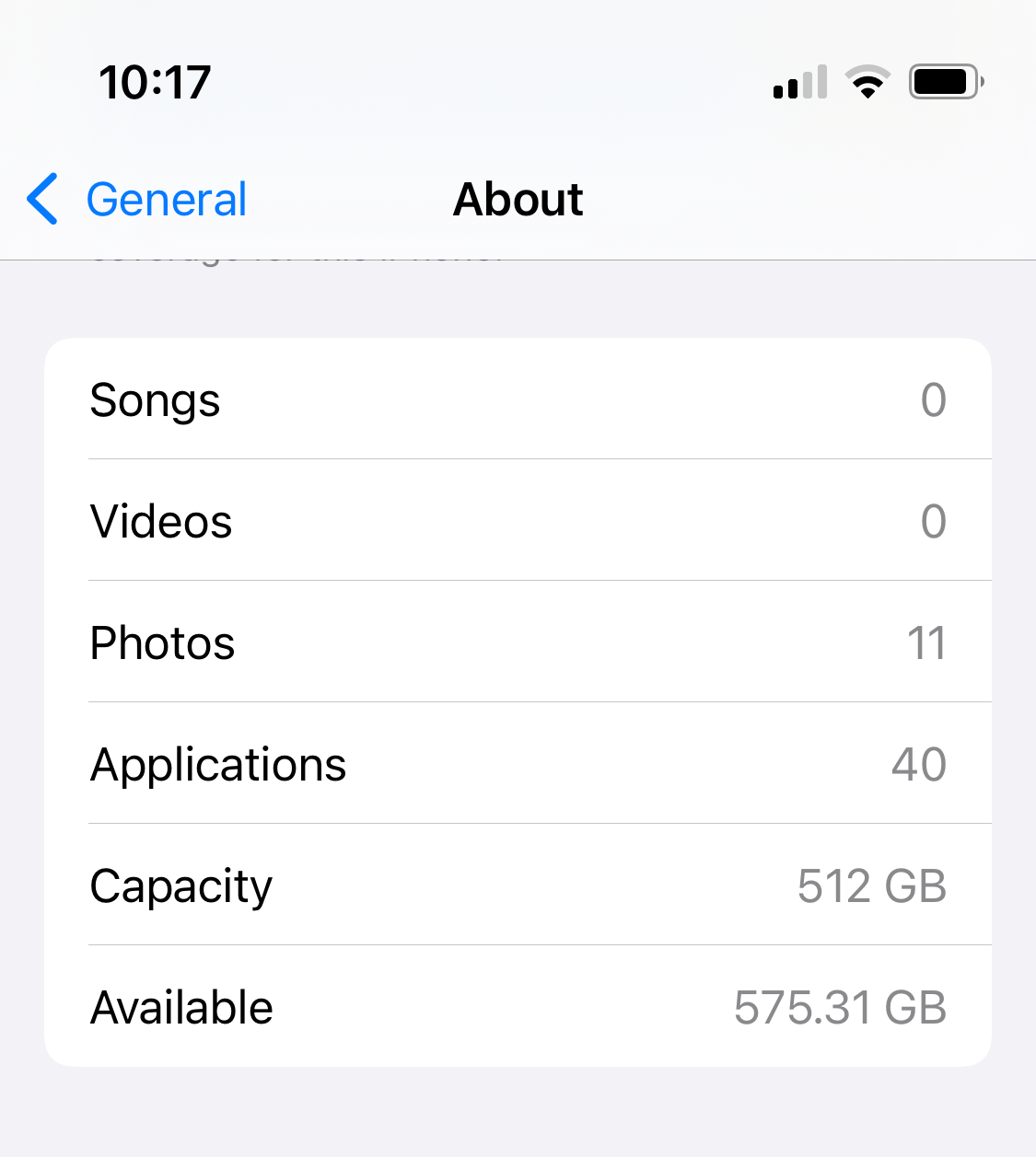 Hi, new to iPhone. My 13 mini 512 GB says that I have over 575 GB available. Does anyone know what is going on? Seems like iOS has a lot of odd issues going on.
