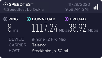 That has to be UWB speed doesn't it?12 PRO Max. Stockholm city centre carrier Telenor. No uwb just regular 5g.