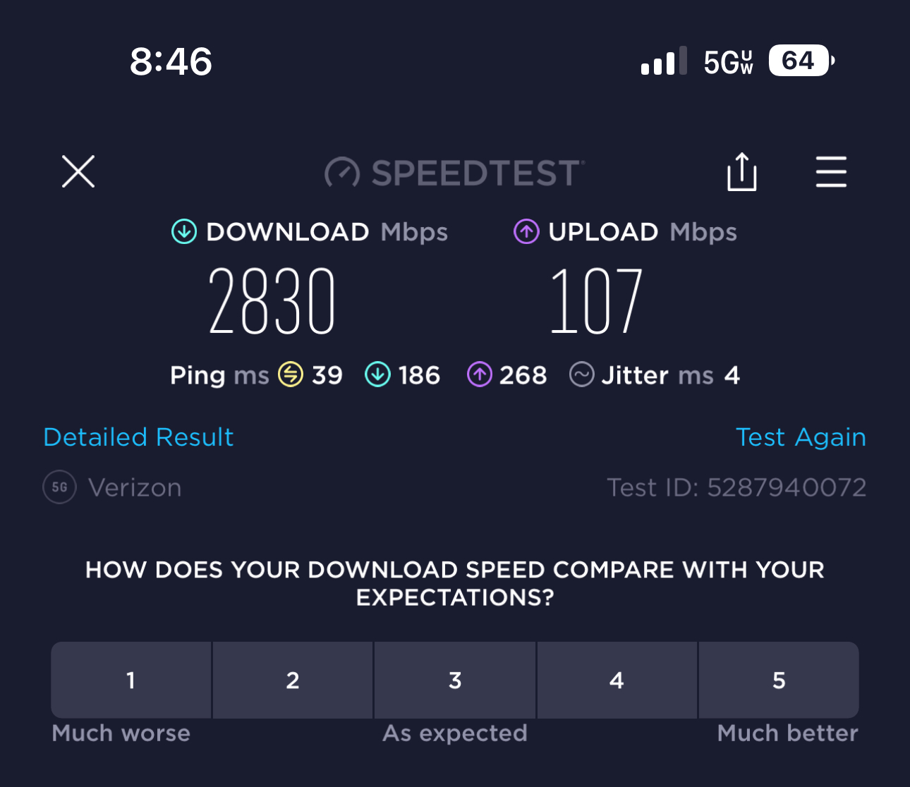So for the first time the other day I was impressed with 5g speeds. I was in Queens, NY at Arthur Ashe and the screen shot is what speed test said.