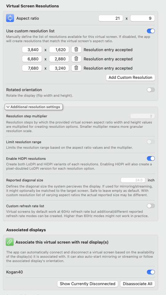 3840 x 1620 HiDPI - appears to be a no-go with any configuration permutation of Better Display*.