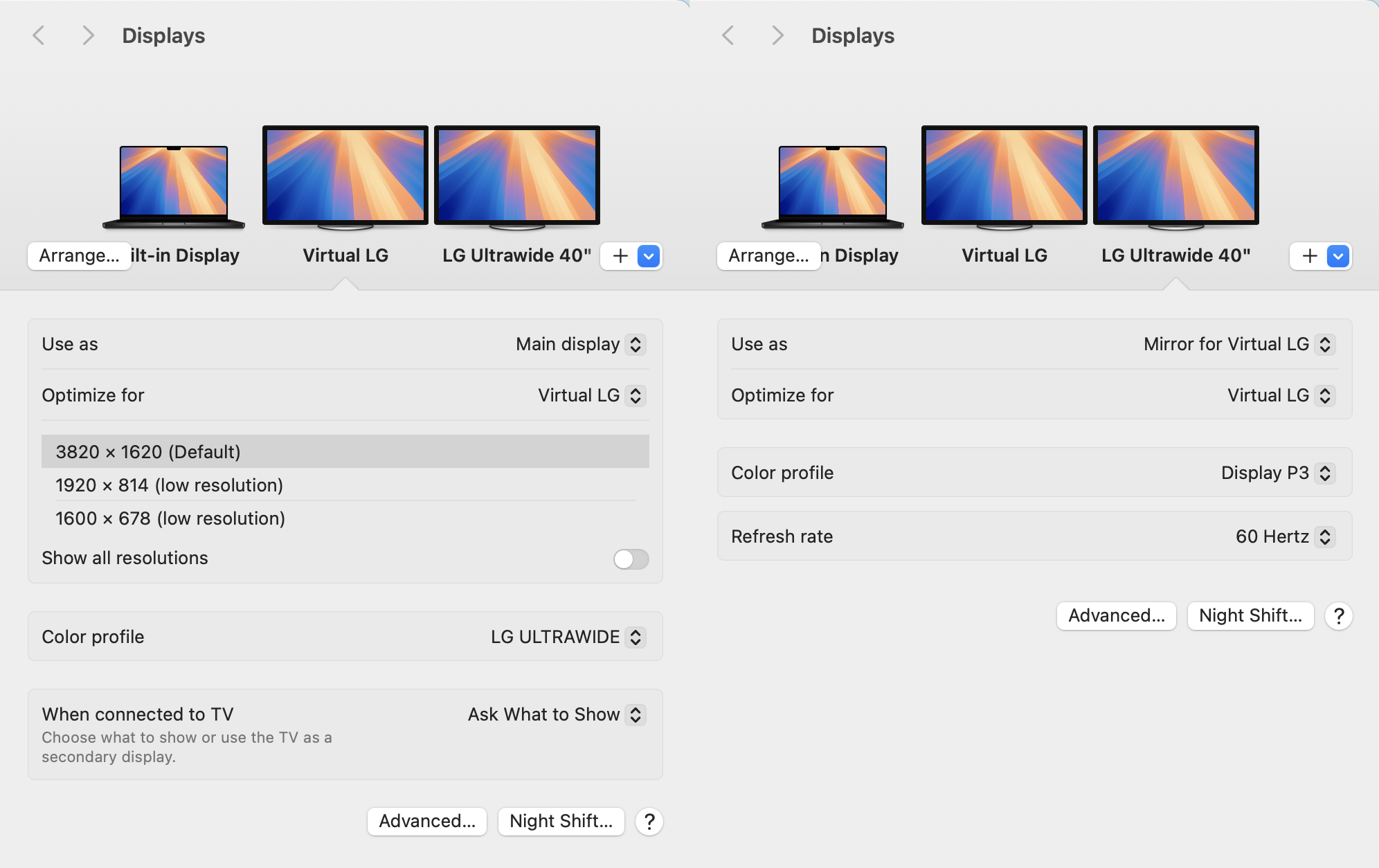 T’hain means either buy an Apple display to make the problem go away, or use Better Display’s virtual screen capability to work around the issue. Details on how to do that are described elsewhere upstream in this thread.What do you mean with Apple or Better Display? I use Better Display but don't have the option to use 3840x1620 in HiDPI.