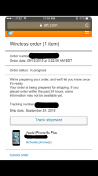 I got my shipment notification yesterday. 6+ 128 Rose. Ordered through att 11:57pm pst 9/11Yeah I've been watching that thread all day and didn't see anybody, but it's possible I missed them.