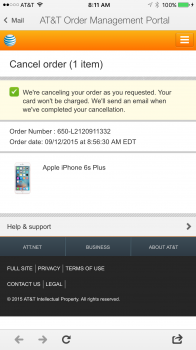 I can get a 64GB 6s+ today from the Apple store, BUT the freaking idiots at AT&T cannot cancel my existing order that they never shipped because it is "PREPARING TO SHIP."