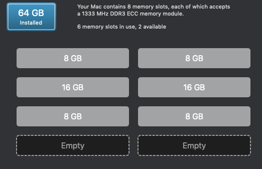 Today I received 6 modules all with 16GB of ram with specifications I believed good for MP 5.1 12 core.