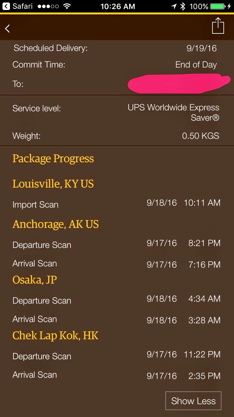For people who just got Apple shipping notices and UPS is showing your phone sitting in China right now, when is your UPS estimated delivery date? Tuesday 9/20 or Wednesday 9/21? Mine is Wednesday and I'm in Phoenix.