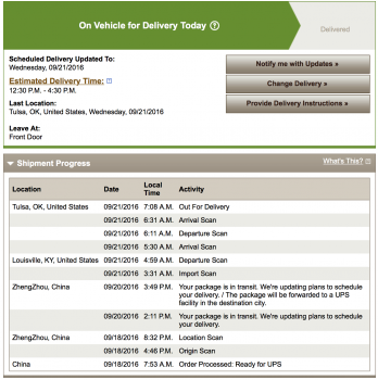 Same here. What kind of operations UPS is running?I've done the math on the time zones and mine is the same. Stupid UPS.