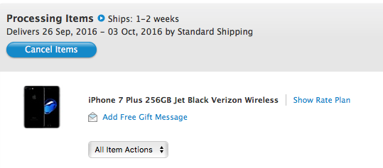 I used the Apple Store App for iPad and was able to get in at about 3:03 am eastern. Placed my order for 7+ Jet Black 256 with no problem and received my confirmation via email at 3:05 am eastern and also received the same delivery time table as you. Maybe I have missed it but is it safe to assume no or very few 7+ Jet Black are to be delivered anywhere near the 16th? Second question, anecdotally, do the delivery dates move up? Thanks.