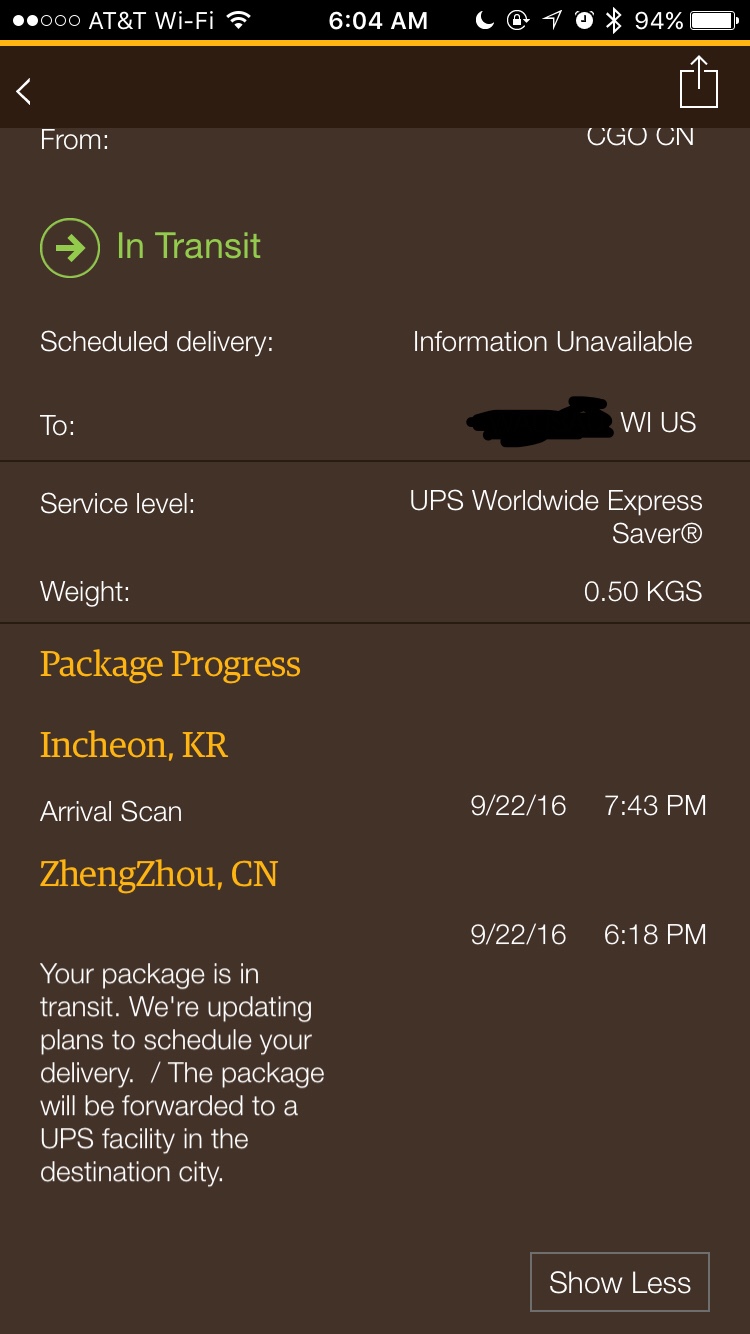 Same for me. Now it says just rescheduled delivery. But it did leave china so that's good.Anyone else seeing this?