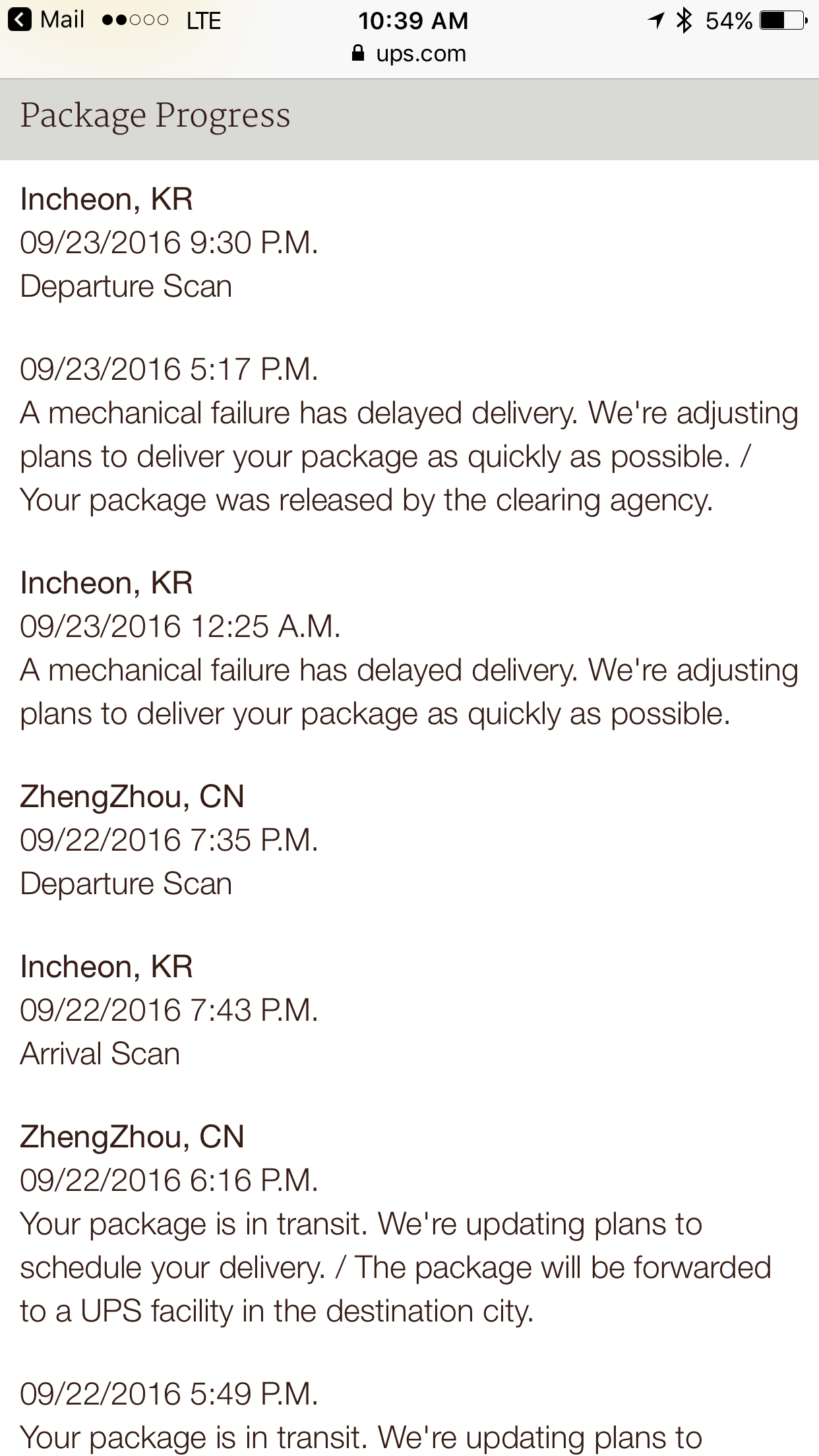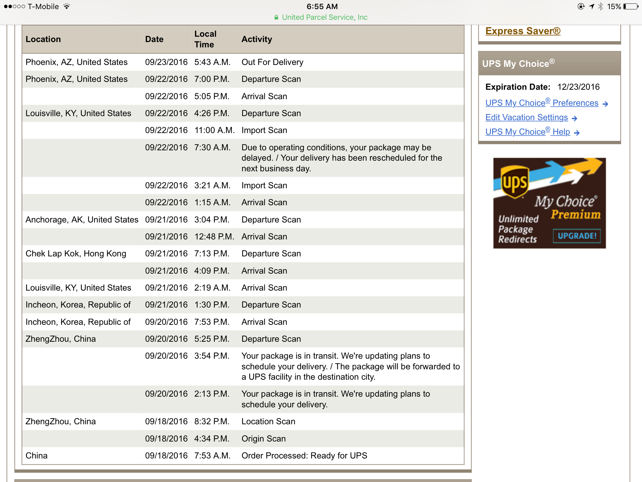 called UPS and they told me that it's going from Hong Kong to Alaska.
