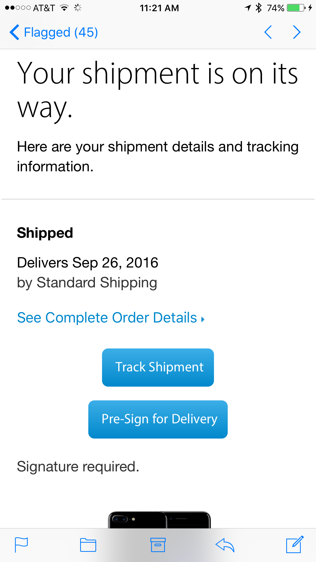 Me, too. I got the Apple e-mail last night saying my phone would be here today. I also got texts early this morning from UPS saying my delivery has been changed to Monday, but in the tracking section it still says delivery info not available. I called UPS since my phone arrived in Seattle at 6:17am (3hrs away) with no movement since. I was told that it was going to be put on a plane to Spokane today and delivered this afternoon. I will be shocked if that happens, but we'll see.