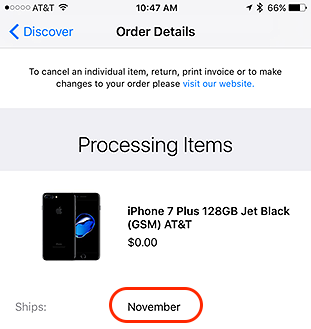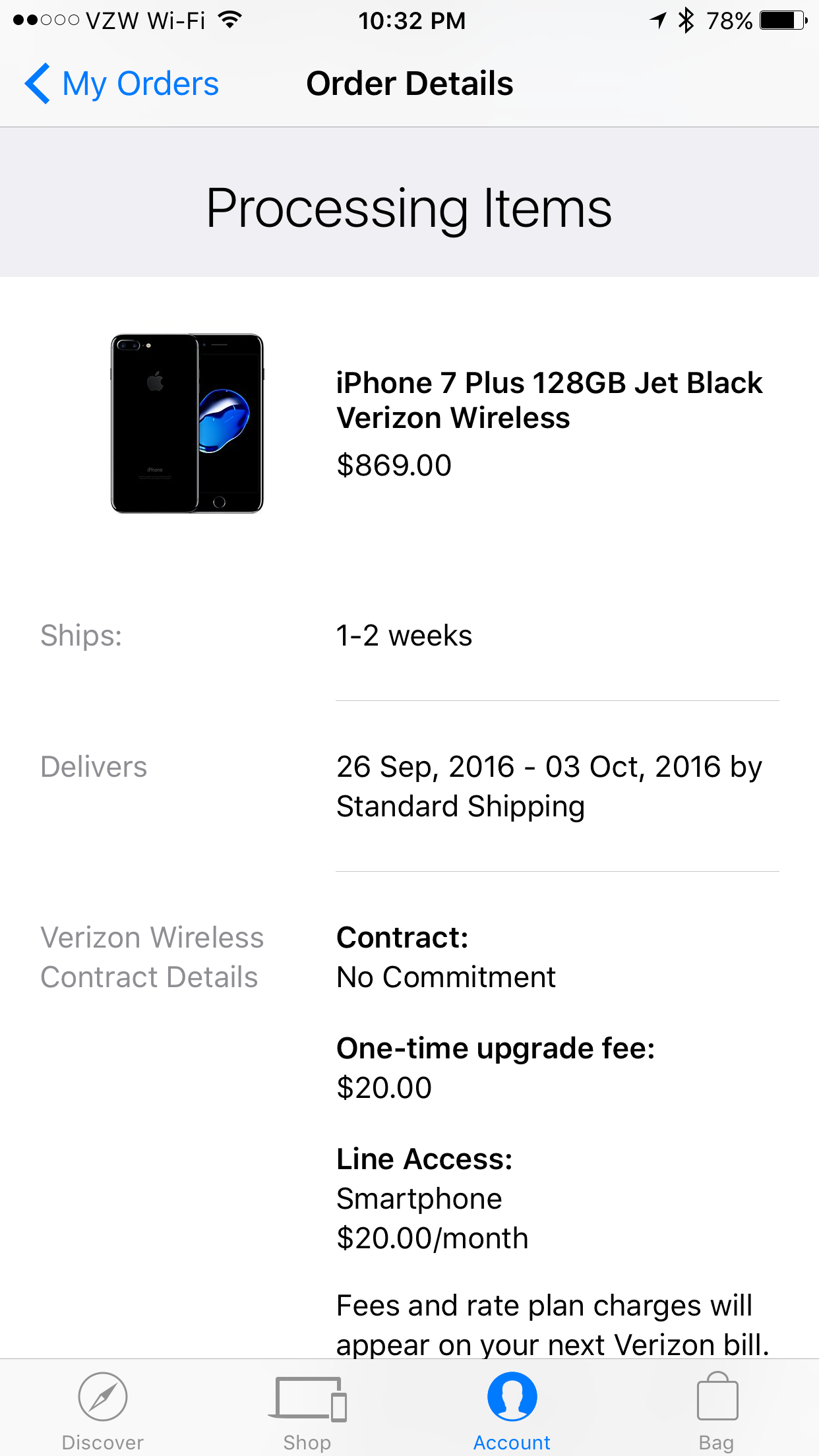 iPhone 7 126GB Jet Black on Verizon, ordered at Apple with the IUP delivery set for 9/16 ordered at 12:40am