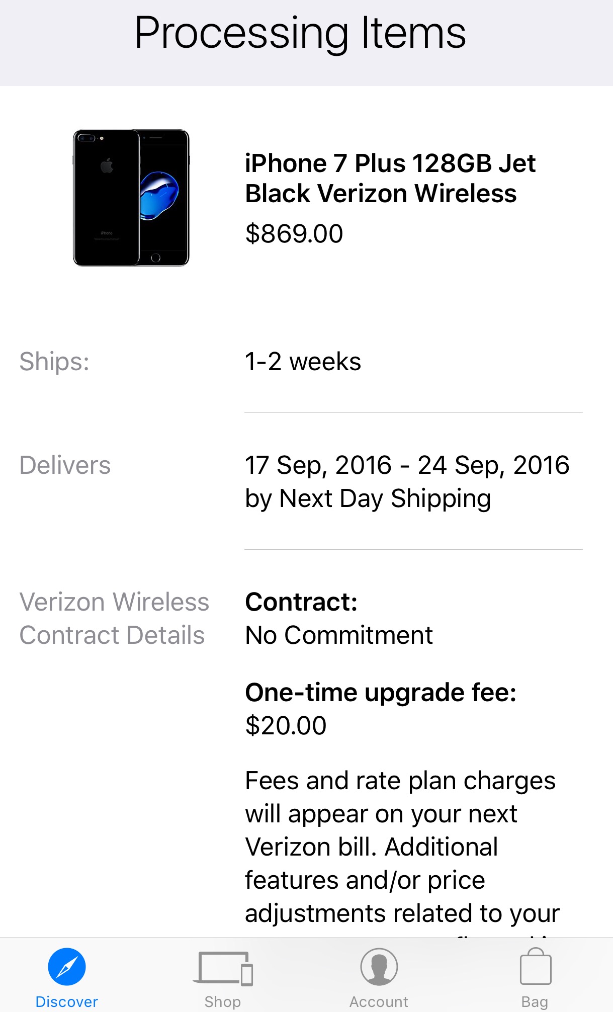 Got my preorder for a Jet Black 128GB 7+ Verizon iPhone delivery changed earlier! Sept 17-24th. Launch day delivery looking more likely.