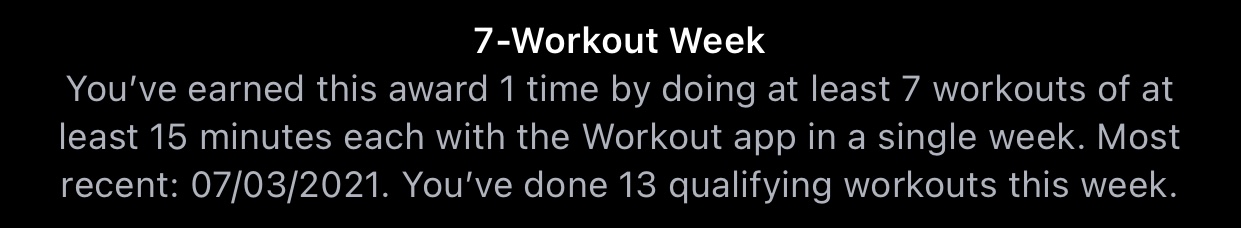 For the second time in a month, I have not been awarded the seven workout week award when I should’ve been. I had an alert on my watch today saying get a workout today and you’ll get the award. Well I did the workout, but not received the award. This is the second time in two months as I say. I last received it on the 8th of November.