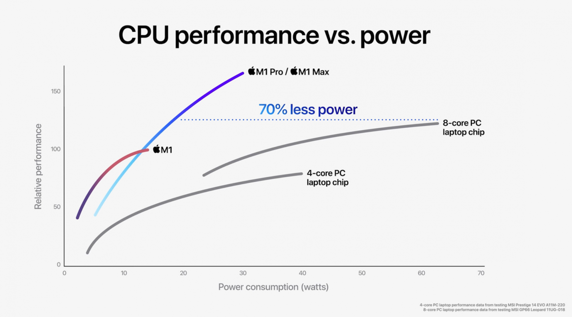 So tl;dr Apple have been able to make current bleeding edge levels of performance actually work for a properly mobile form factor where Intel, AMD and Nvidia have failed.The only point where M1 Max/Pro appears to shine is performance on battery, which many professional users rarely use. You can also experience less noise and less thermal throttling compared to mobile high-performance i9 but other than that, I expect similar performance to high-end mobile workstations, based on initial benchmarks. We will see if there is any sub-2,500$ PC laptop on the market that can achieve better CPU performance. Then, you have GPU performance which comes near, but does not match mobile RTX 3080 according to Apple itself. Again you have less noise and less thermal throttling due to the efficiency of the M1 but definitely the new MBPs do not blow out of the water mobile existing workstations from Lenovo, Dell and other major OEMs. The efficiency of Apple Silicon is definitely something very exciting when it comes down to iPhone/iPad/MBA, but for devices like the iMac, or even high-end MBPs, Im sure many people are ready to sacrifice 3-4 hours of battery life, and some fan noise more frequently, but to have vastly superior performance compared to Windows-equivalent laptop. 20 hours battery life is an overkill. It is good to have a few hours of batter life for meeting, while traveling and such, but two-days battery life for a laptop is absolutely not necessary, especially when you sacrifice so much potential performance.