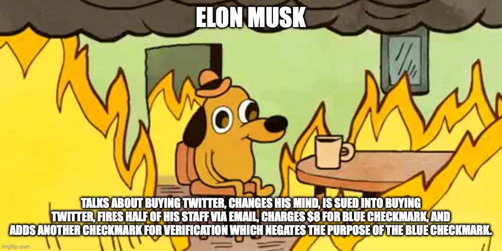And a week later re-hires some of the staff he fired. The acquisition of Twitter has been about as smooth as the Lee Harvey Oswald jailhouse to courthouse transfer.