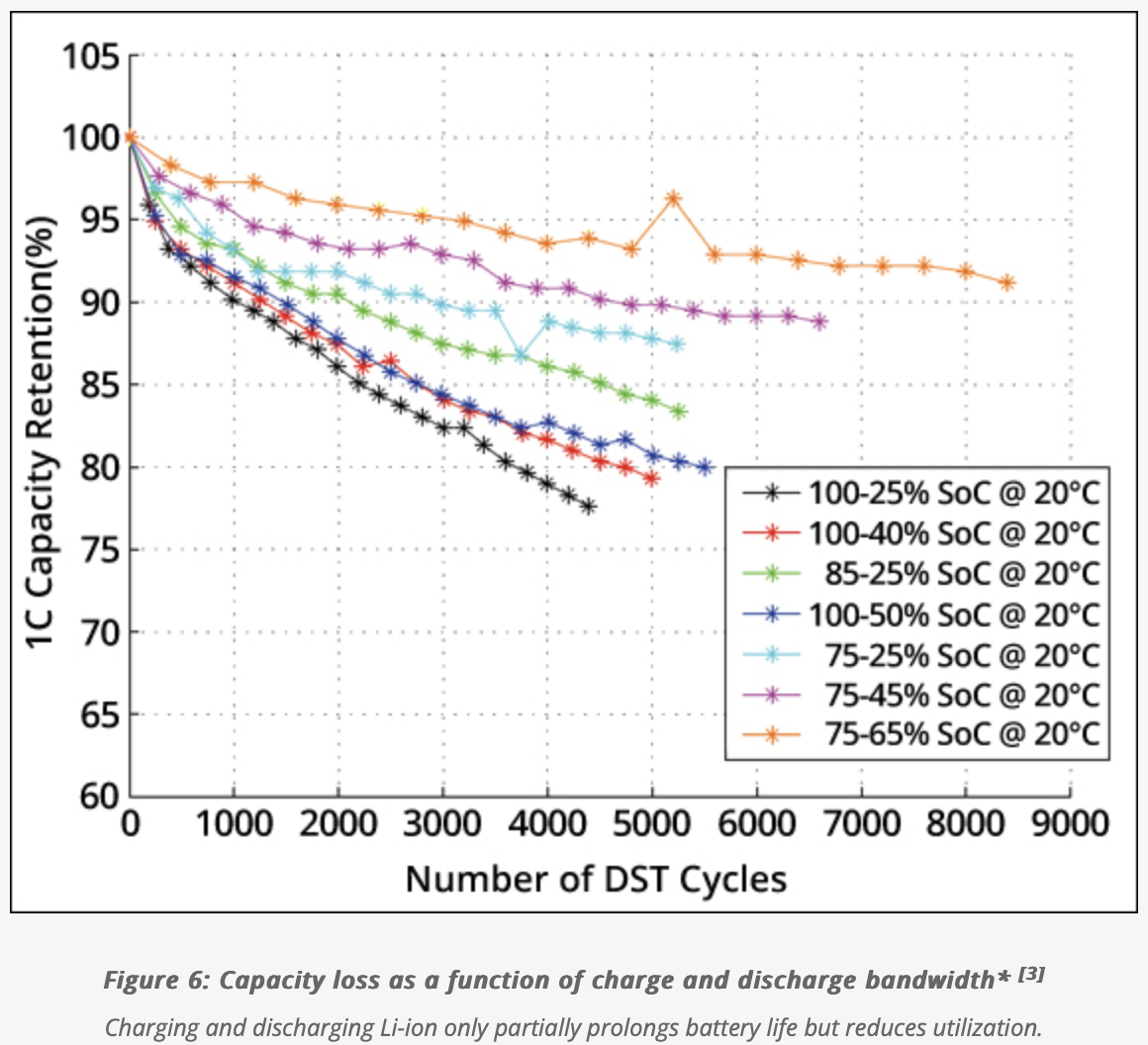 it says charging to 100% and discharging to 25% give 4000 cycles before reaching the 80% capacity you've been keeping yourself to all along. That's once a day for 10 years. That wouldn't seem worth it. To be clear though, I don't believe this plot applies to the iPhone battery-- which is why knowing what we're talking about matters.