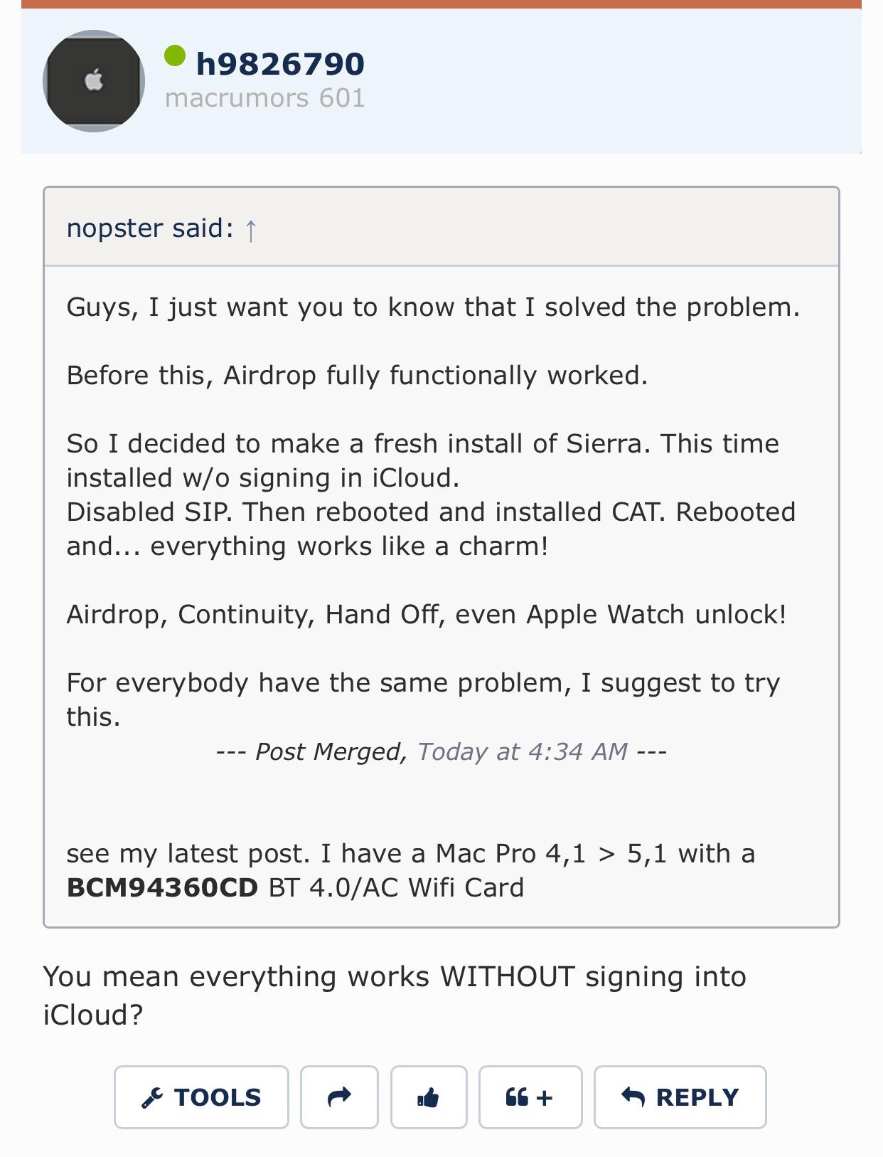 Everything else works fine though, Continuity, Handoff, Airdrop, etc. Just not Apple Watch unlock.Real simple. If you refuse then Apple says you need Mac Pro Late 2013 or newer.