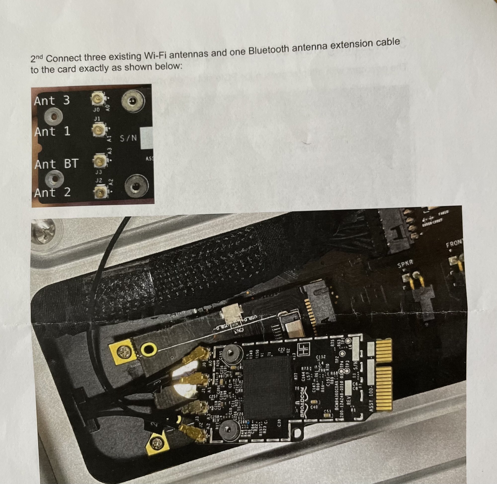 so short that could not reach the position of the mPCIe slot (the new iMac Card is a Wi-Fi and BT combo Airport Card). So we need an extra wire to