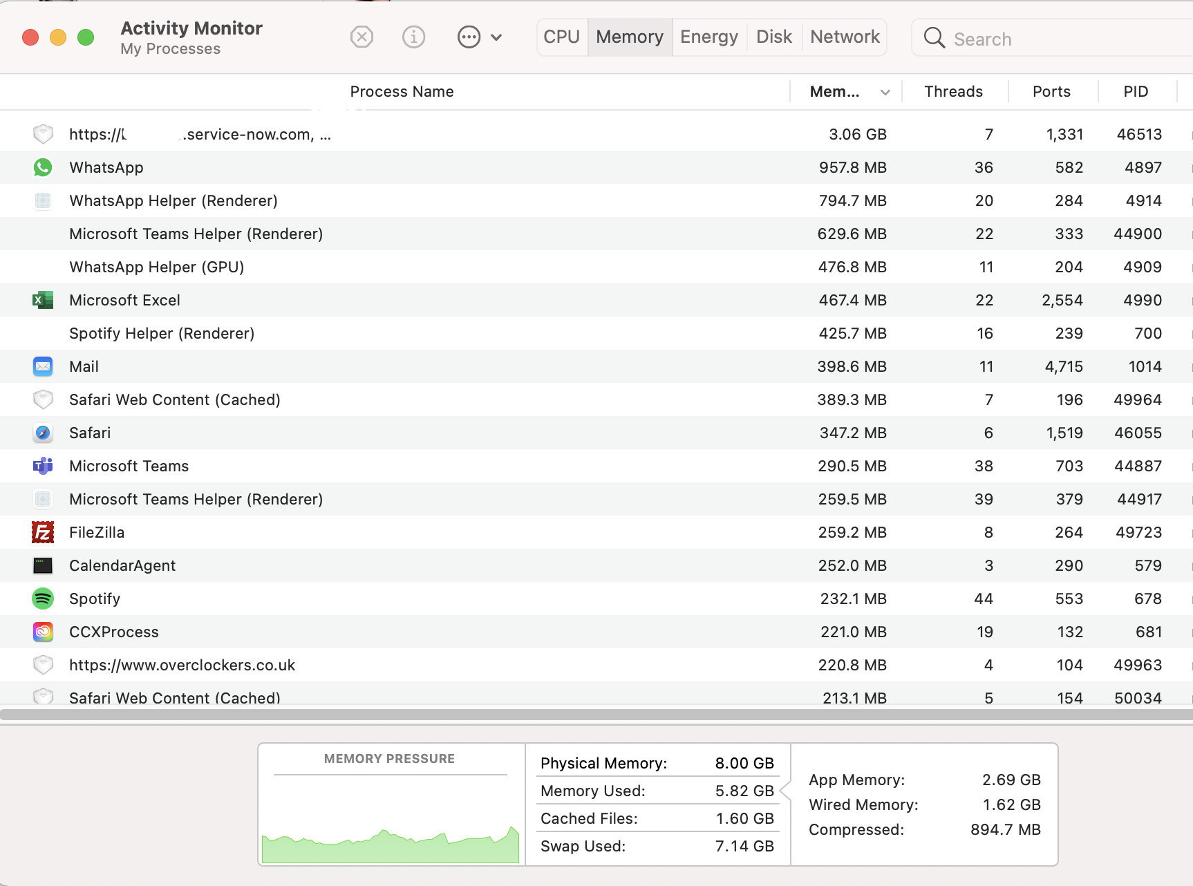 Just to follow up on this, here's ServiceNow using 3GB RAM and slowing my base MBA down.