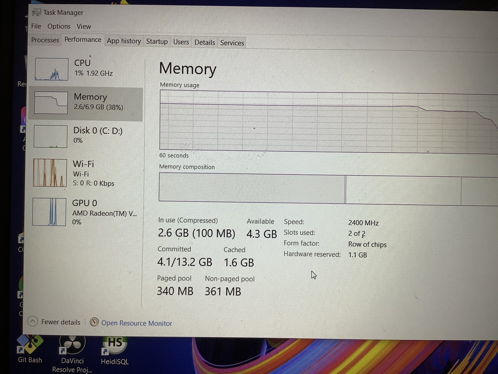 macos also behave the same when max ram 4gb . The only diff is windows dont max em all compressing and decompressing data. The m1 cache to prevent max ram but if upgradable ssd aint scare much but if keep frequency high usage request from not enough ram scare me a lot( after mine imac 2017 problem now in repair ).That Windows System is actually impressing me. Only 2.6GB?