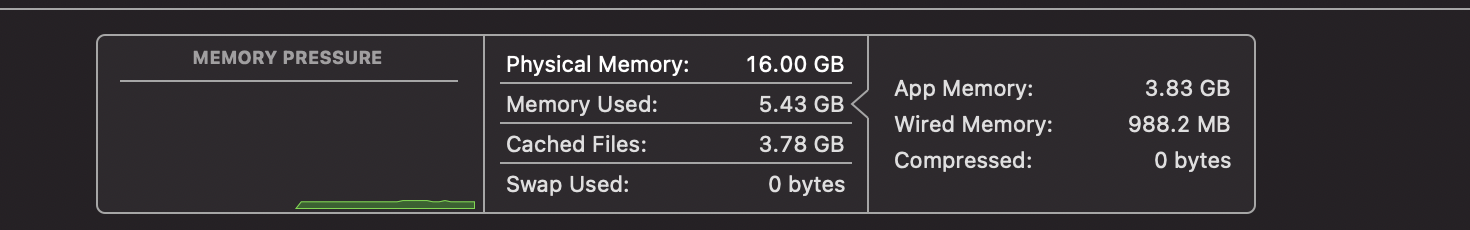 Again, those RAM usage numbers don't mean what you think they do. Your view that people should get 16GB doesn't follow from them, nor does anything about how 8GB on the M1 compares to 16 on Intel. People have done fine with 8GB on the M1 with dozens of tabs open.High Sierra vs. Big Sur is basically irrelevant to topic at hand. If anything, you "using" 2.7 GB of kind of backs up that if you can afford it, you should shoot for 16 GB of RAM. Web browsing eats several GB of RAM, which is what most people do on their computers.