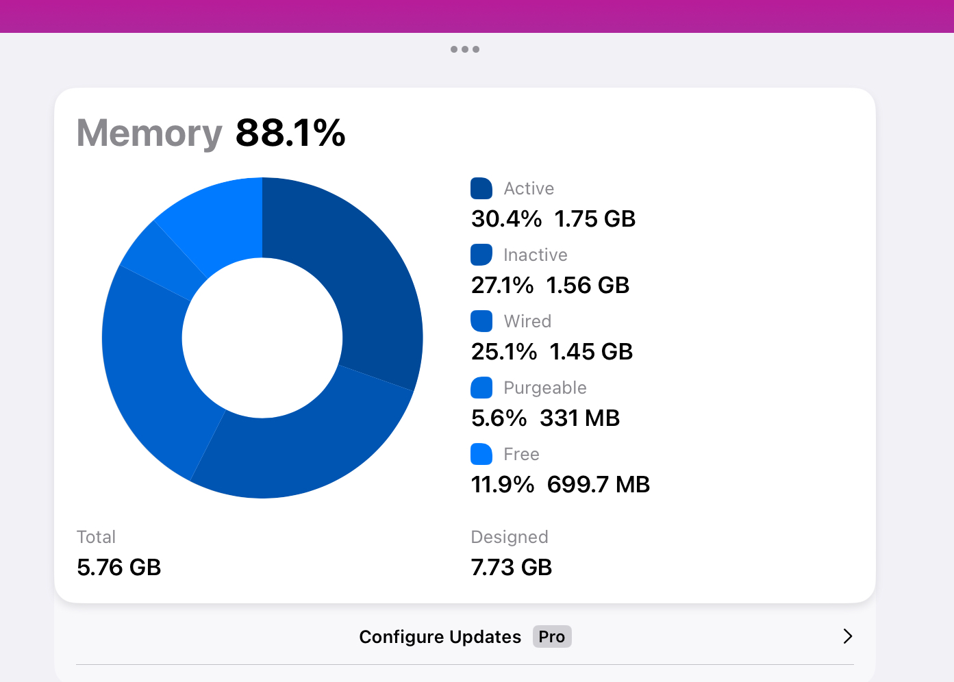 Sorry to bring this thread up again, but I was wondering whether anybody can help me with my expected use case: I work on and annotate very large PDFs (1-2GB big) with the PDF Viewer app. I have been using an iPad Pro 2020 with 6GB of RAM so far, it has been occasionally sluggish (when for example searching text), and I have installed a monitoring app which shows that RAM goes as low as around 150MB free when doing so, and rebounds a bit later. But still remains under 1GB free throughout intensive tasks, such a scrolling through the PDF's pages, where rendering also occasionally hiccups.