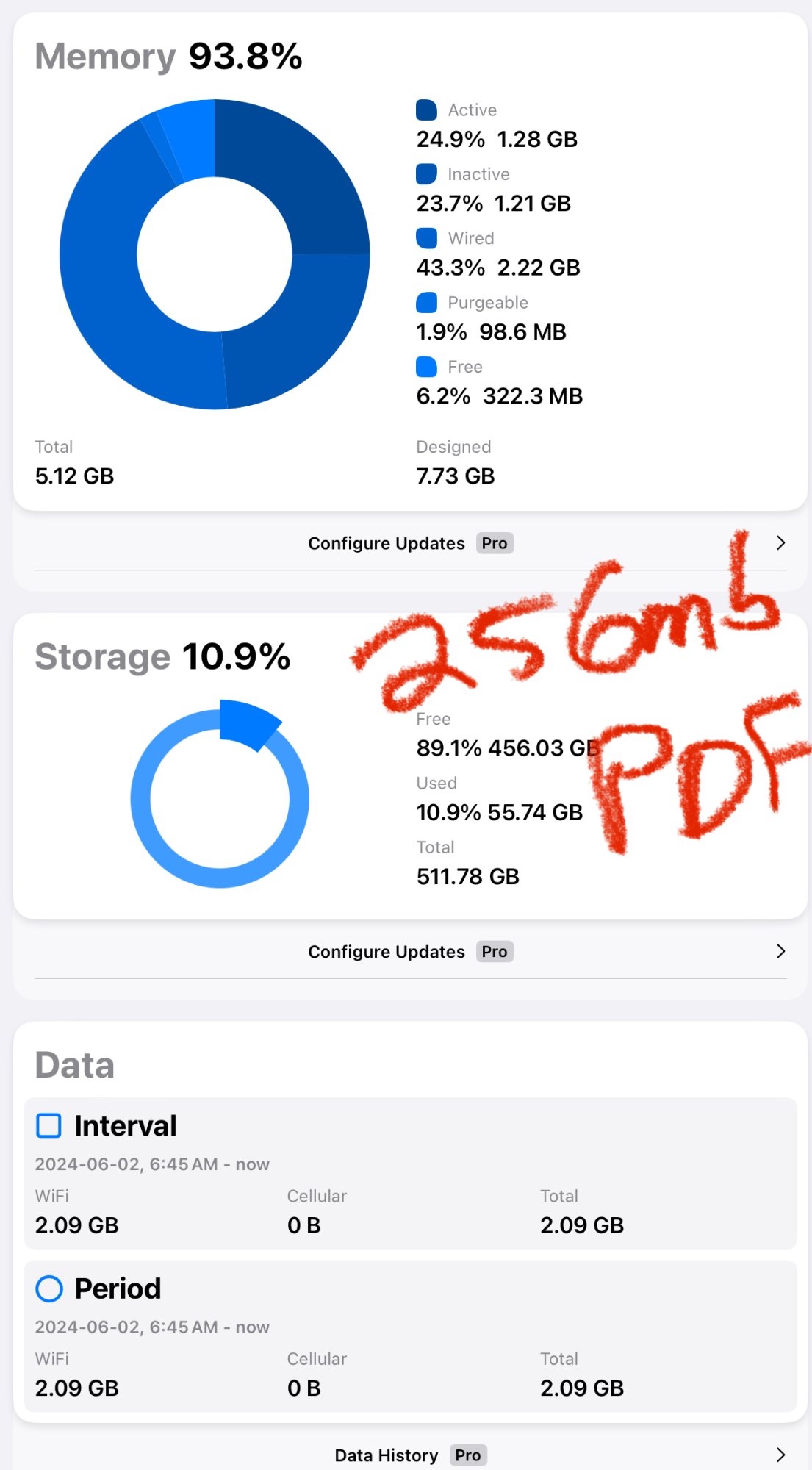 This would imply that there is little change between 6GB and 8GB when it comes to rendering heavy PDF files. It would be ideal if someone with a 1TB+ model on 16GB could run a similar test to see what happens then, but it does appear to me that one good justification for a 16GB model is such a use case. It is clear that large PDF files task the RAM far more than video rendering programmes or similar.