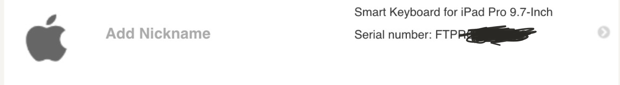 Yeah I just did mine too, the Smart Keyboard was a bugger to read because I cant find the box for it. Resorted to slapping my macro lens on the iPhone and taking photo of the serial inside the ASK so I could read it