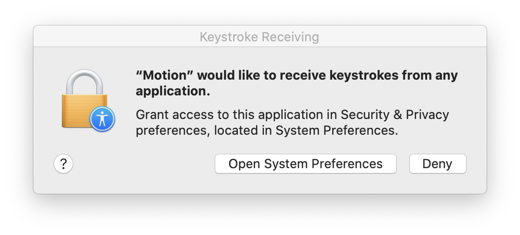 Anyone run into this using an Official Mac Application? Why would I want Motion (or any App for the matter) to see what I am typing while not using it?