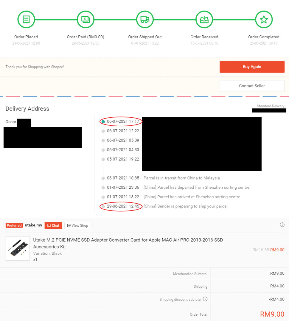 one good thing about these platforms are, that they can link china sellers with malaysia buyers, shipment is quite cheap (usually less than 10MYR (2.35 USD), and whenever there's offer (which is all year round), they even give free shipping, and courier to your doorstep. the timeframe of shipments usually takes a week only, since they send via airplanes and distance wise is quite near. (attached image of the time taken to arrive and price i paid for)