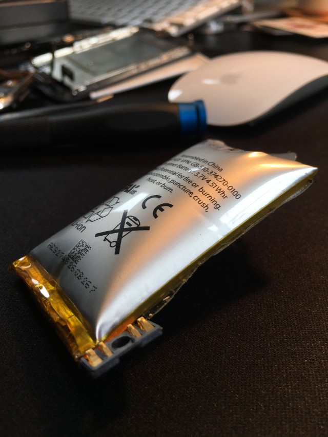 Each time I took a screw out I heard a loud 'pop' and the battery expand further by pushing out more as the pressure from being held back lessens.