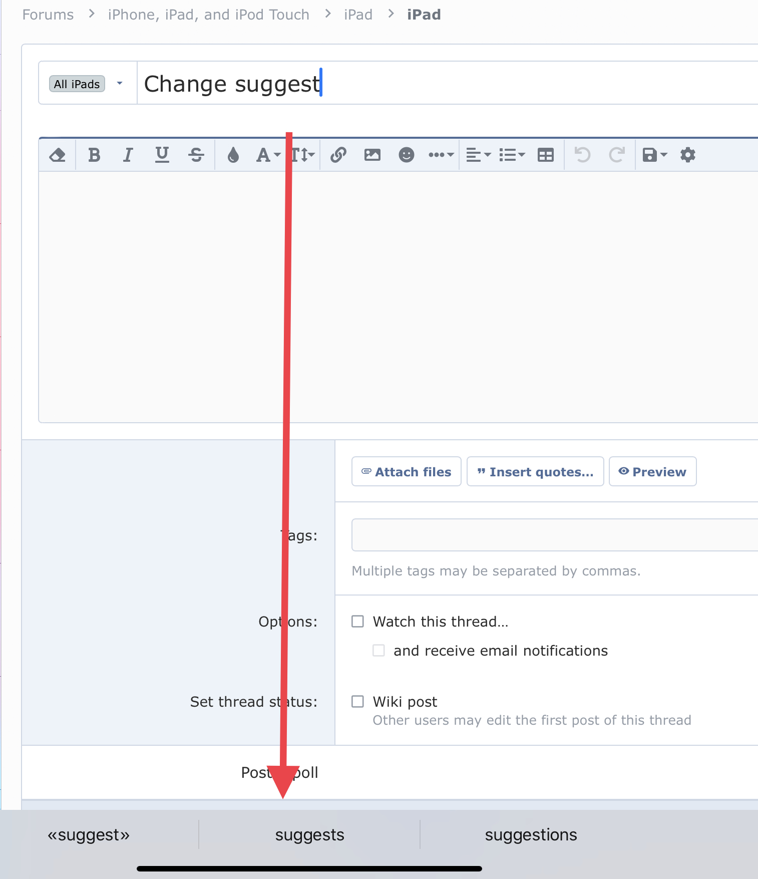 Hi, how can I swipe/change the words the iPad suggests me when I’m typing with the external keyboard (Apple keyboard, Magic keyboard i.e.). A shortcut like cmd+arrow right or something similar, it exists? It’s quite annoying every time use the external trackpad when there’s a keyboard under your fingers