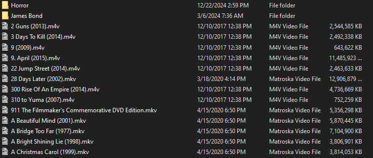 I have AppleTV HD from 2017 (model A842) I wanted to make a simple-ish media server hosted on my Synology NAS. I made a shared folder on it and put the movies there, in 26 subdirectories, one for each letter of the alphabet. There is no standard for alphabetization I could find. I ignored all articles in giving titles to the movies, no matter what the language. So, The Last Detail is in the L directory. I made a new non-admin user with read only privileges for the shared parent folder. When I tried to get VLC for tvOS to access it, I ran into great snags based on the undocumented quirks of the network browser in that version of VLC. It was easy to get to the movies using a desktop Mac, an iPhone, or an iPad. In exploration, I looked at Synology DS Video as a client, and Synology Video Station as a host. It turned out to be for me a nightmare of dense documentation, and just made everything harder. I wanted read-only access for the user, and the default was read-write access. Finally, I managed to get settings that worked for VLC for tvOS, bypassing Video Station entirely, a great relief. I am listing them here in the hope of saving someone else a slog like mine.