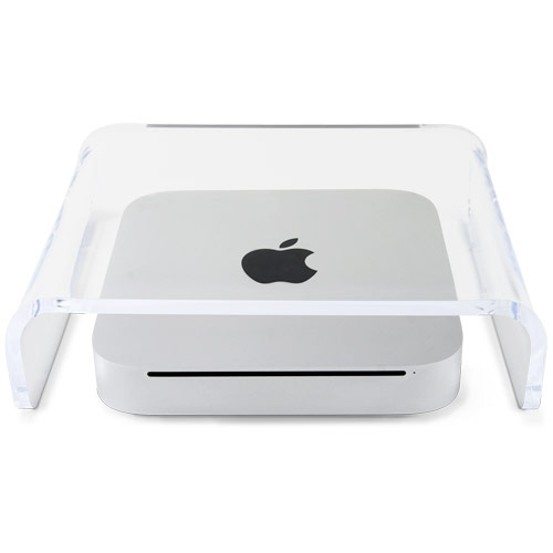 There is a clear plexiglass U shaped ‘shelf’ made for the Mac Mini for this purpose so I’m sure that very soon there will be one available for the studio Mac too.
