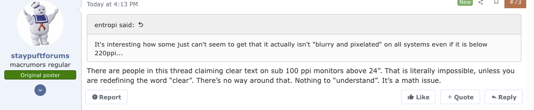 You are not the final arbiter on all this - every individual is. If we’re happy with our screens and we do not find it blurry, then to us, it’s not blurry. We don’t need someone else telling us that we’re wrong - or worse.