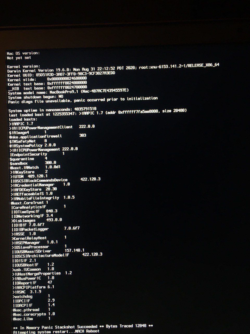 Also, I attached the screen of the latest log message during boot, sorry for the quality.panic "Unable to find driver for this patform: MacBookPro9,1"