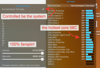 First of all - paste is fresh (MX-4), fans are clean, SMC and NVRAM are reset. I undervolted with Volta (-60mv), turned off Turboboost and limited the TDP to 35 watts (despite the scorny filings).