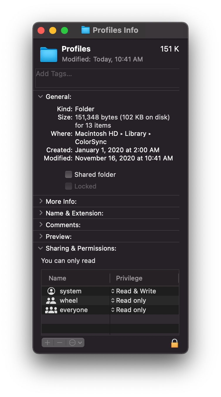 I've made clean install of Big Sur on MBP. Everything works fine except one problem - I can't edit /Library folder. I wanted to set up a profile for my external monitor and found out that I can't copy any files to that folder.