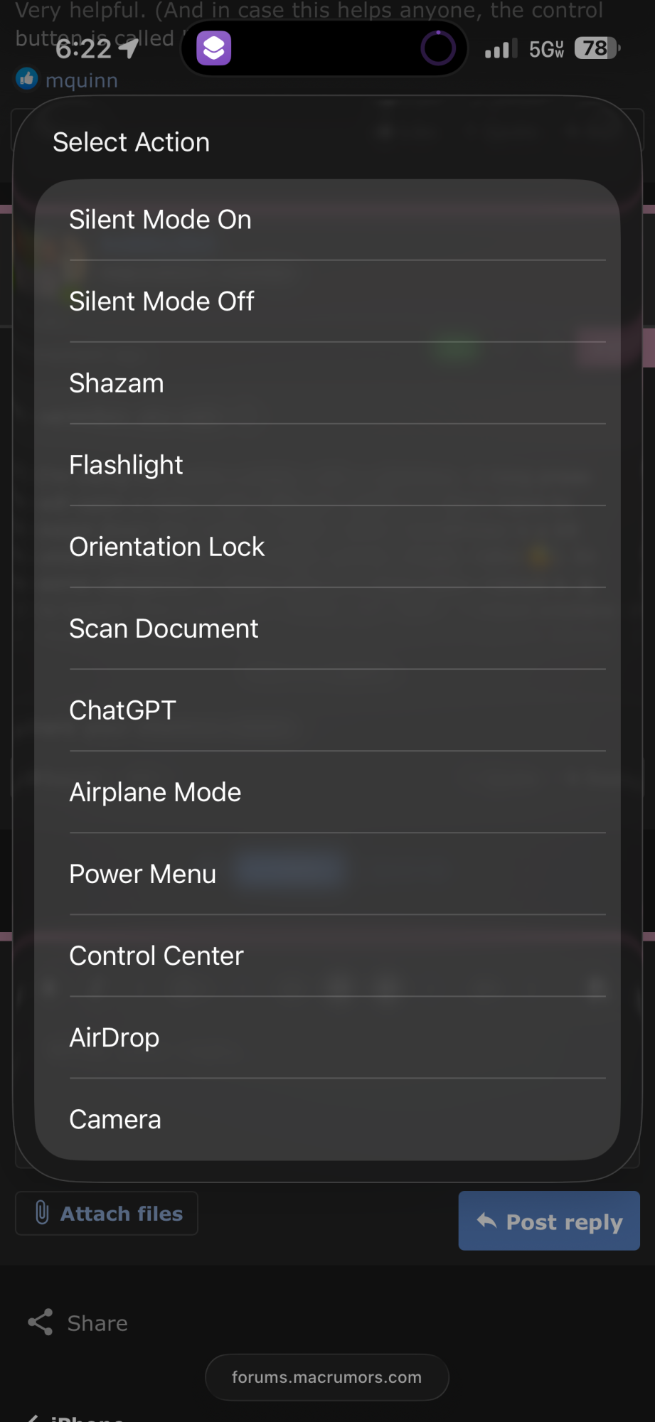 Share your shortcut pleaseI’m using the action button with a shortcut. A long press will open a menu with different stuff so I don’t have to swipe down the control center which sometimes is a bit uncomfortable for me (small woman hands, haha 😅). In some categories I setup kind of a drop down menue e. g. to toggle from sound to vibrate and silent. I linked airplane mode with another short cut which turns on battery saving mode when activating airplane mode and some more tweaks.View attachment 2476862