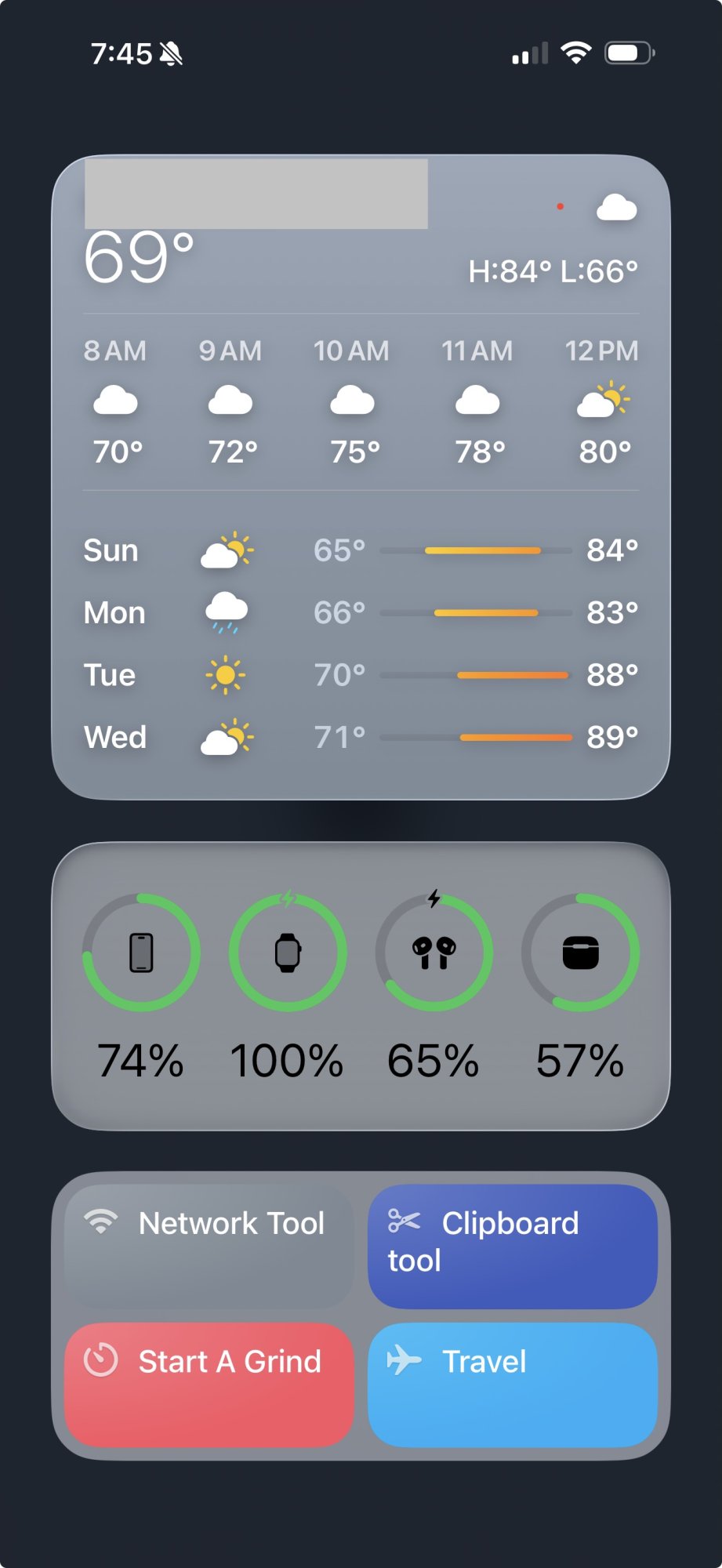 This is mine. I had it set for camera at first, but that was pretty useless. Camera will probably come out of this list, too, as soon as I figure out a different shortcut I want there. I probably use shopping list the most — it just opens my list in Reminders. But this is a way easier method of getting there.