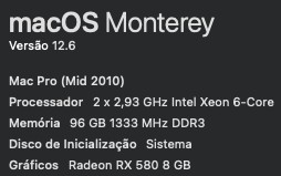 I have a MacPro5,1 (mid 2010) / 2 Xeon x5670 / Radeon RX580 8Gb.