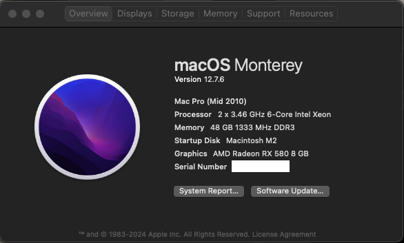 Ok, now for some reason the mouse and kyb don't work in the USB 2.0 slots on the back of the 5,1 cMP. Plugged in a USB 2.0 adapter which got them working, but I remember reading about an issue (Monterey installation?) where the system loses the USB 2.0 kexts in Monterey and only works as 1.1. Sorry if I'm mixing things up, but it's been a while. Is this an issue with Martin Lo's pkg?