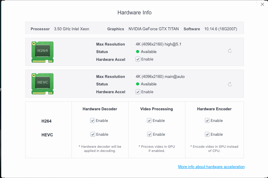 And for iMac Pro, due to no iGPU, then use dGPU (GFX0) for HWAccel.