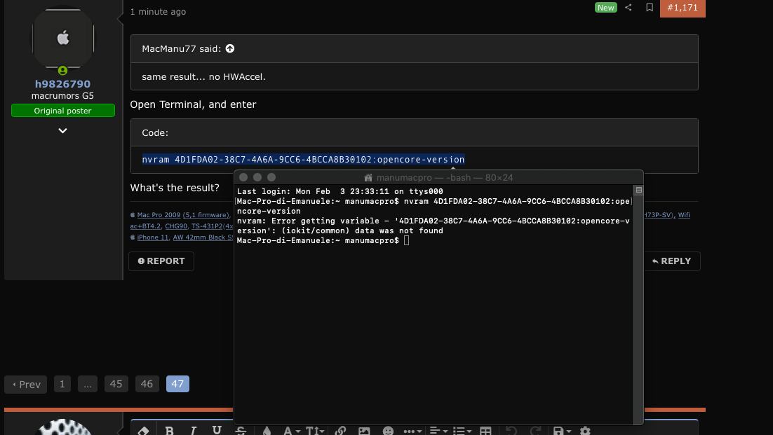 I read from post #1 to page 36 of the "OpenCore on Mac Pro thread", but on this thread, I only read a few pages, including the last few.