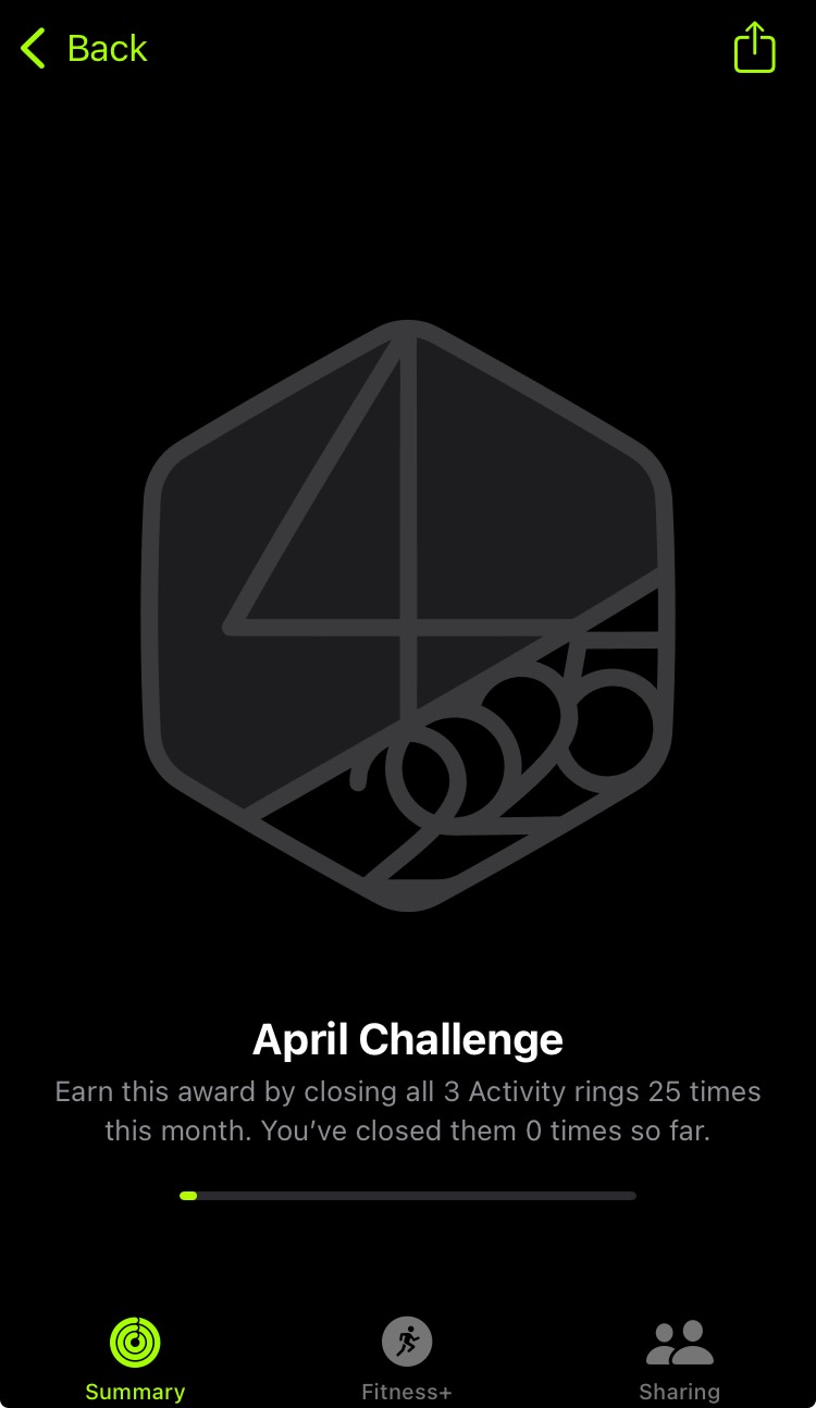 This month’s challenge was a bit easier than last time. It didn’t require me to burn a minimum number of calories, double the Move ring or do a specific number of exercise minutes over two weeks. Instead, it’s all about doing HIIT exercises nine times this month.