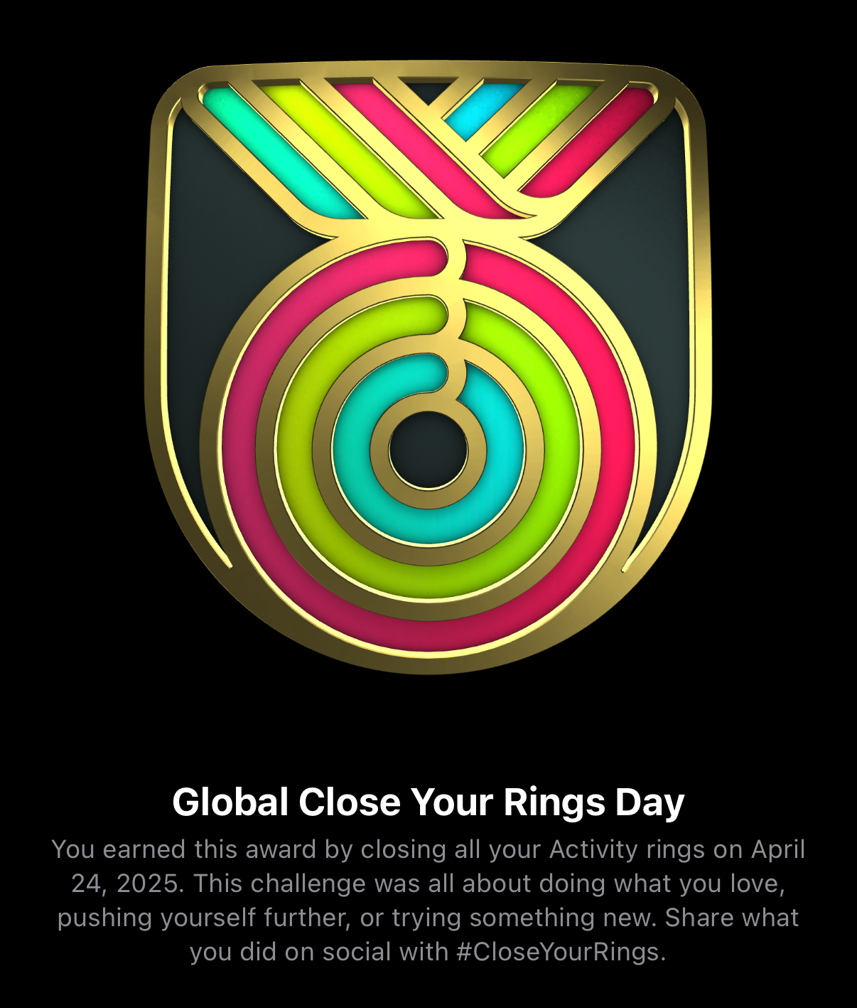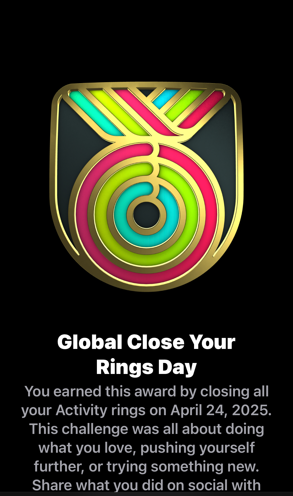 Same here, did my hour plus long workout, my phone has the closed rings recorded, but haven't got the award. Both the Watch, Phone, TV and HomePod are updated to the brim. Oh well.I did a 45 min Barre workout this morning and still didn’t unlock the Earth Day award. 😟
