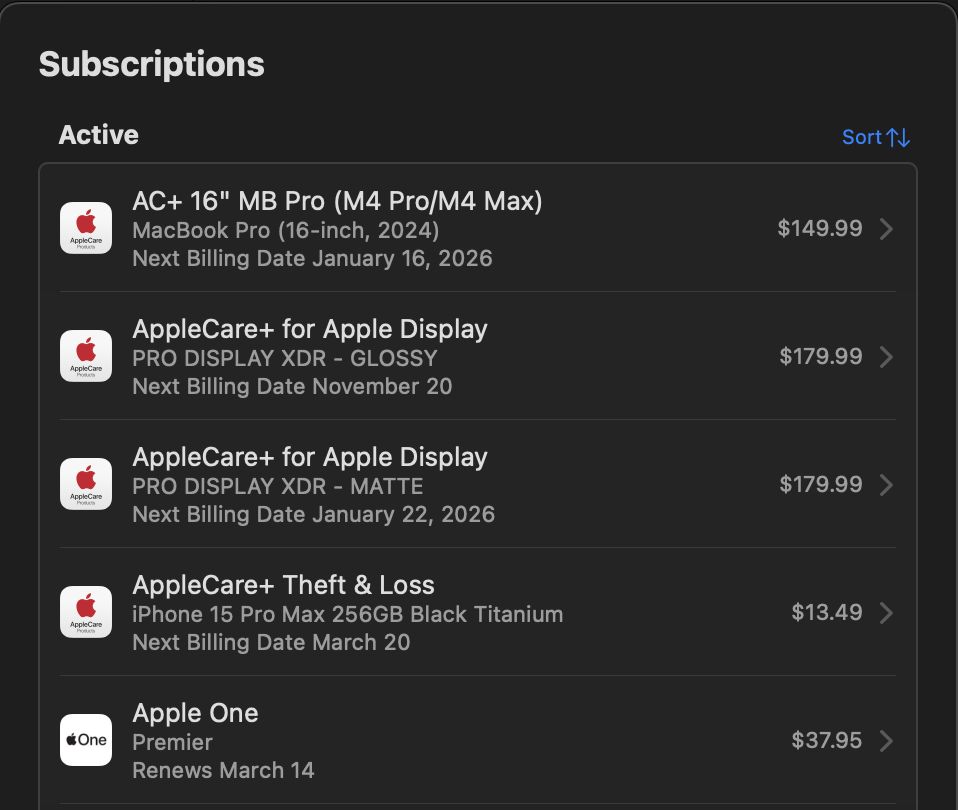 The display now shows up in my subscriptions much like AppleCare+ for an iPhone or Mac does, see the image below.