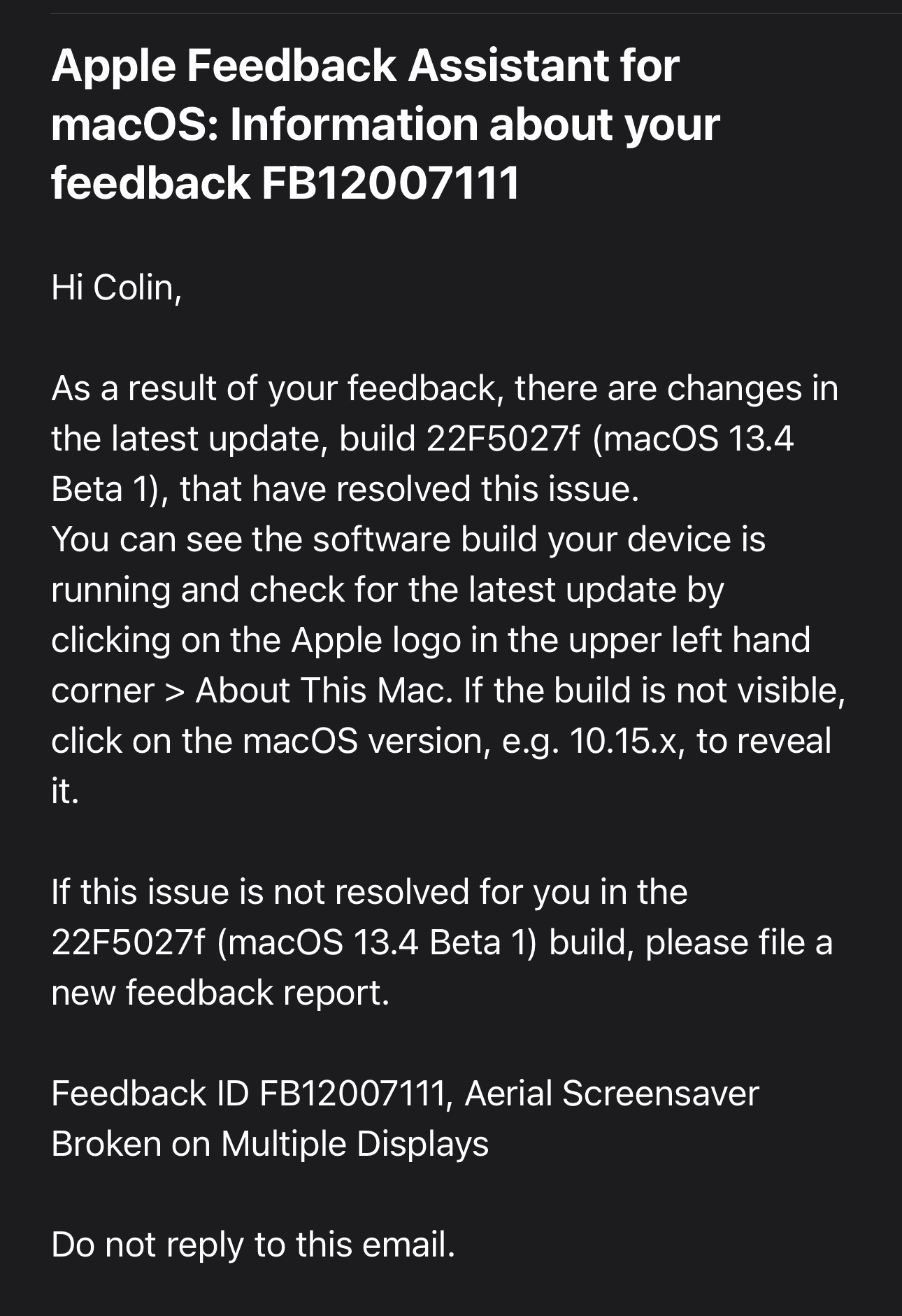 Has anyone else who uses Aerial Screensaver on multiple displays noticed that it has broken under Beta 8? I can only get it to work intermittently now, and only on one display at a time - it won't span displays anymore!