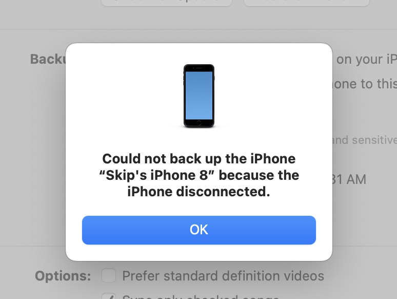 Could well be. Although my Mac did have me install an "update" (not OS) prior to being able to sync and update the iPhone. Now, I am stuck on Big Sur, so that could be the reason for the "update" on my Mac.It's got to be the IOS, worked perfectly fine prior to the other day, until I tried to make a physical backup on the mac.