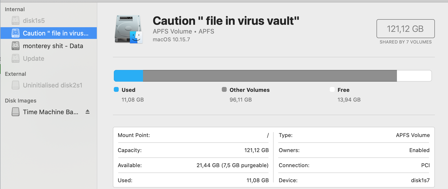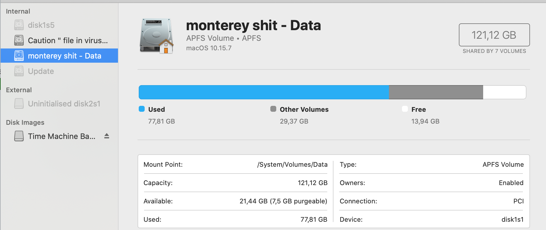 Since than I have 2" shadow" volume. The one takes up space but can't really be opened. I can eject it, but after the next reboot it is back.